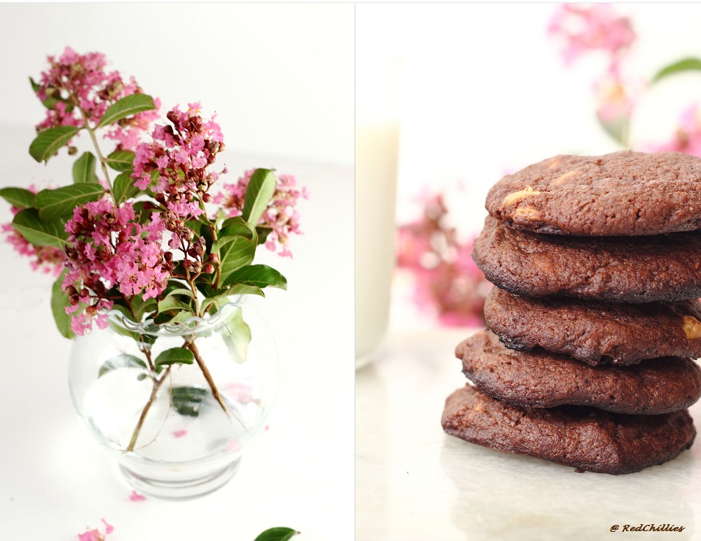But last weekend morning when he asked “Amma, can we please bake chlocate cookies?” I could not resist and gave in. Like most kids, he loves chocolate in anything; but not so much DH and me. He still refers to it as “Chlocate” and I don’t get the heart to correct it. :-). His all time favorite are the regular Chocolate Chip cookies.