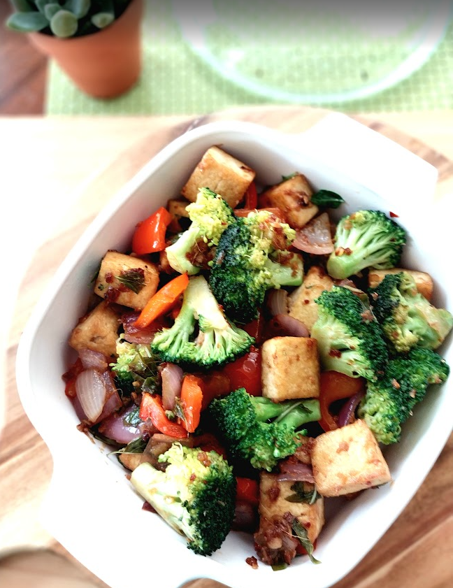 Tofu Vegetable with Fresh Basil Stir Fry is a flavorful and wholesome dish that combines tender cubes of tofu with a colorful array of stir-fried vegetables like bell peppers, zucchini, and snap peas, all tossed in a savory garlic-soy sauce. The addition of fresh basil adds a fragrant, slightly sweet and peppery note that brightens the entire dish, making it both aromatic and satisfying. Quick to prepare and packed with plant-based protein, fiber, and essential nutrients, this stir fry is a perfect choice for a healthy weeknight meal that doesn’t compromise on taste
